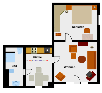 2 Zimmer Ferienwohnung - Nichtraucher - 40 m² Wohnfläche
