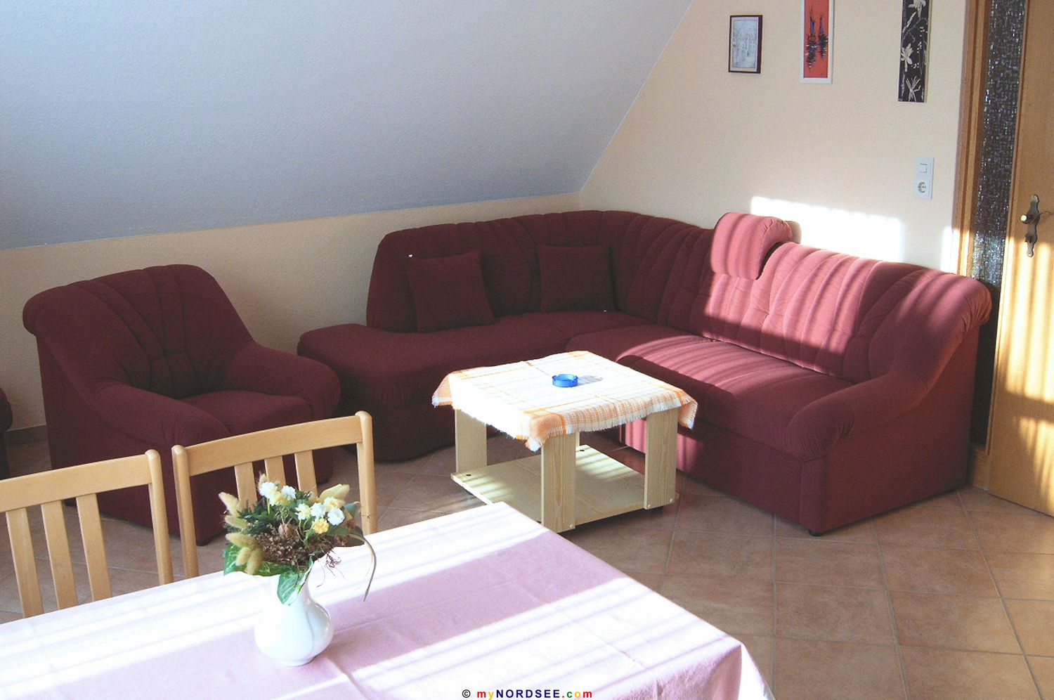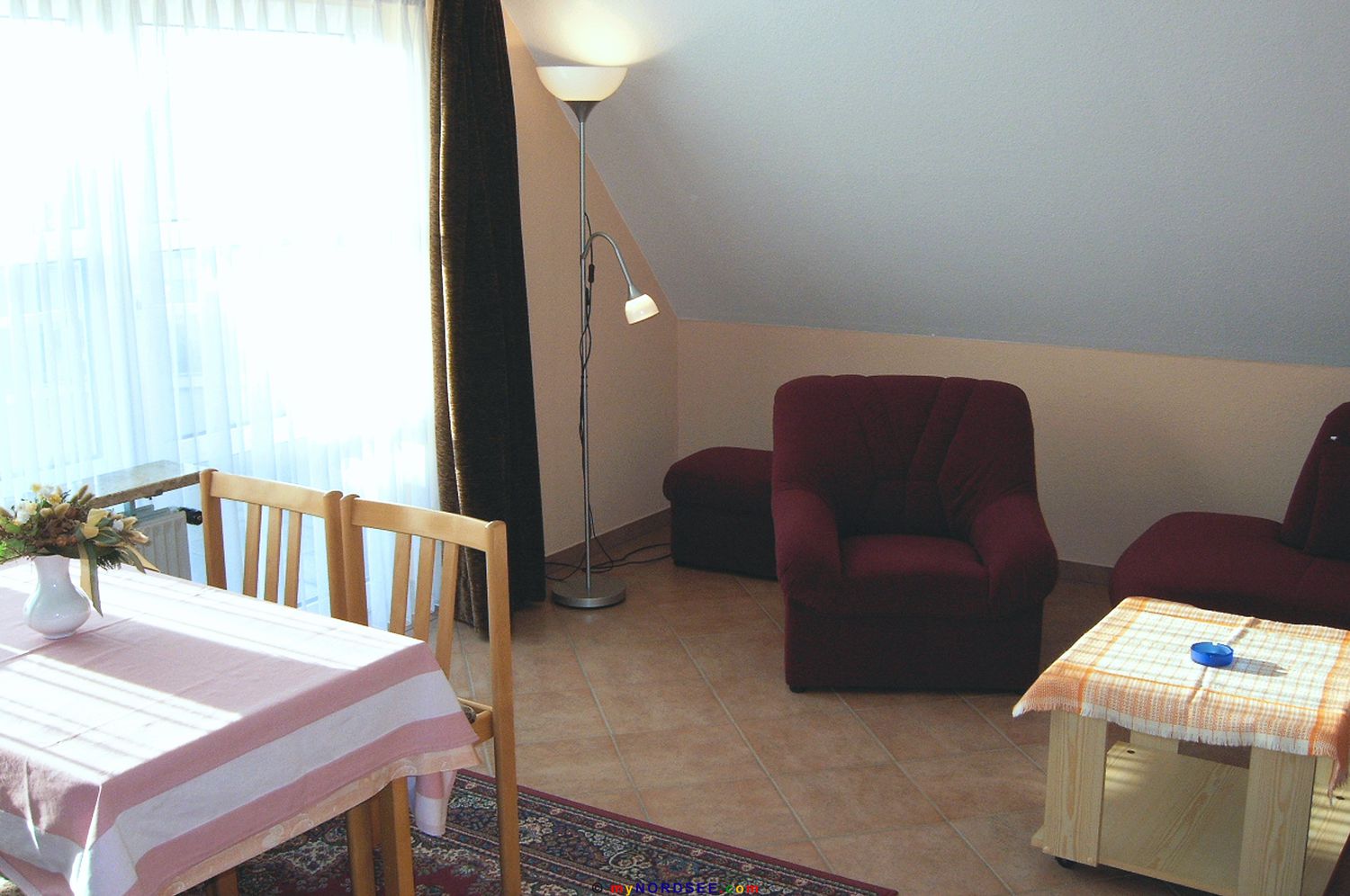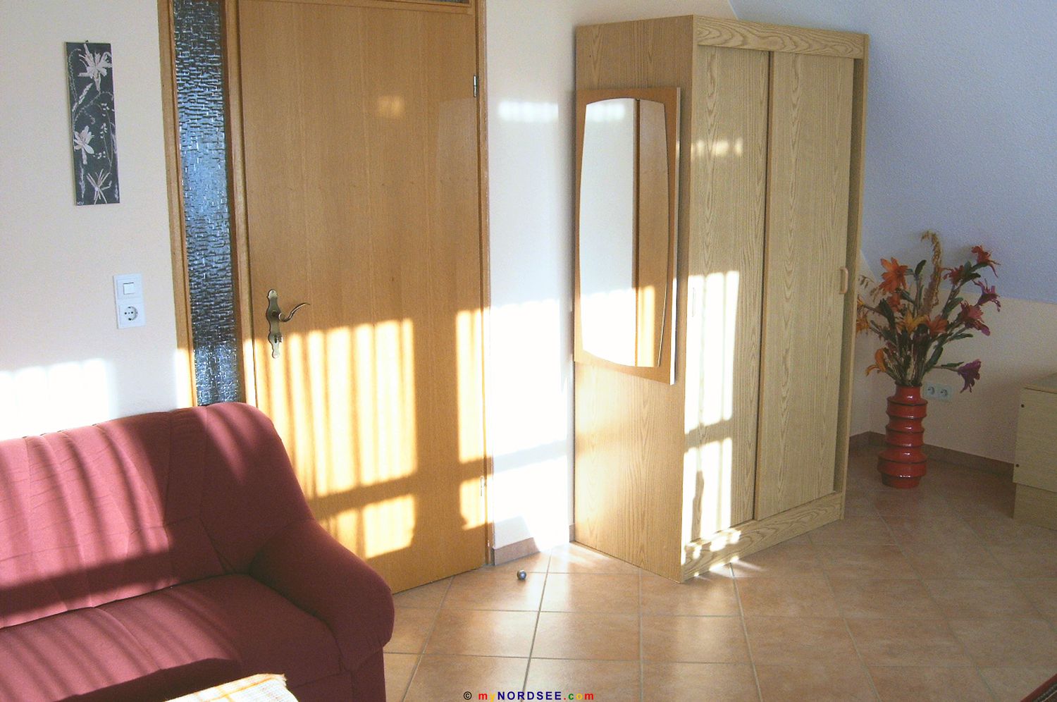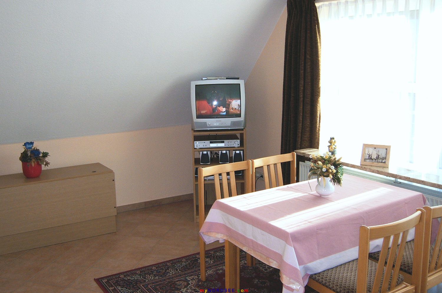 Haus Sarah haben wir Anfang 2004 in Büsum übernommen und bis Ostern für Sie komplett renoviert. Trotz der recht zentralen Lage - in ein paar Minuten ist man zu Fuß am Sandstrand - ist es hier schön ruhig, da es sich um ein reines Feriengebiet handelt. Direkt vor der Tür finden Sie jeden morgen einen Bäckerwagen mit frischen Brötchen und Zeitungen. In der Nähe finden Sie außerdem diverse Einkaufsmöglichkeiten. In knapp 15 Minuten erreichen Sie auch zu Fuß die Büsumer Fußgängerzone mit vielen Geschäften, Cafes und Restaurant.Oder haben Sie einmal Lust Dithmarschen zu erkunden? Die flache Landschaft lädt geradezu zu einer Fahrradtour ein. In 50 Meter Entfernung finden Sie einen Fahrradverleih, Bollerwagen können Sie dort auch bekommen. Sprechen Sie uns vor Ort an, wenn Sie noch auf der Suche nach interessanten Ausflugszielen sind. Zu jeder Wohnung gehört ein eigener Parkplatz. Abstellmöglichkeiten für Kinder- und Bollerwagen, sowie Fahrräder sind vorhanden. Eine Waschmaschine ist ebenfalls im Haus vorhanden. Ab dem 19. Juni öffnet nach langer Umbauzeit in Büsum das Erlebnisbad "Piratenmeer" mit vielen interessanten Attraktionen. Unter anderem finden Sie hier mit der "Long-John-Silver-Rutsche" die zur Zeit längste (110 Meter) und schnellste (40 km/h) Wasserrutsche Schleswig-Holsteins.