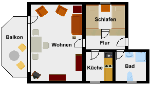 2 Zimmer Ferienwohnung - 40 m² Wohnfläche 1.OG
