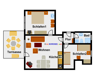 3 Zimmer Ferienwohnung - 60 m² Wohnfläche
