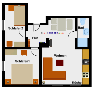 3 Zimmer Ferienwohnung - Nichtraucher - 48 m² Wohnfläche