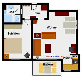 2 Zimmer Ferienwohnung - Nichtraucher - 43 m² Wohnfläche