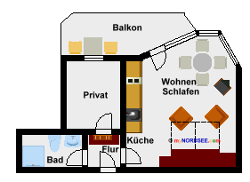 2 Zimmer Ferienwohnung - 36 m² Wohnfläche