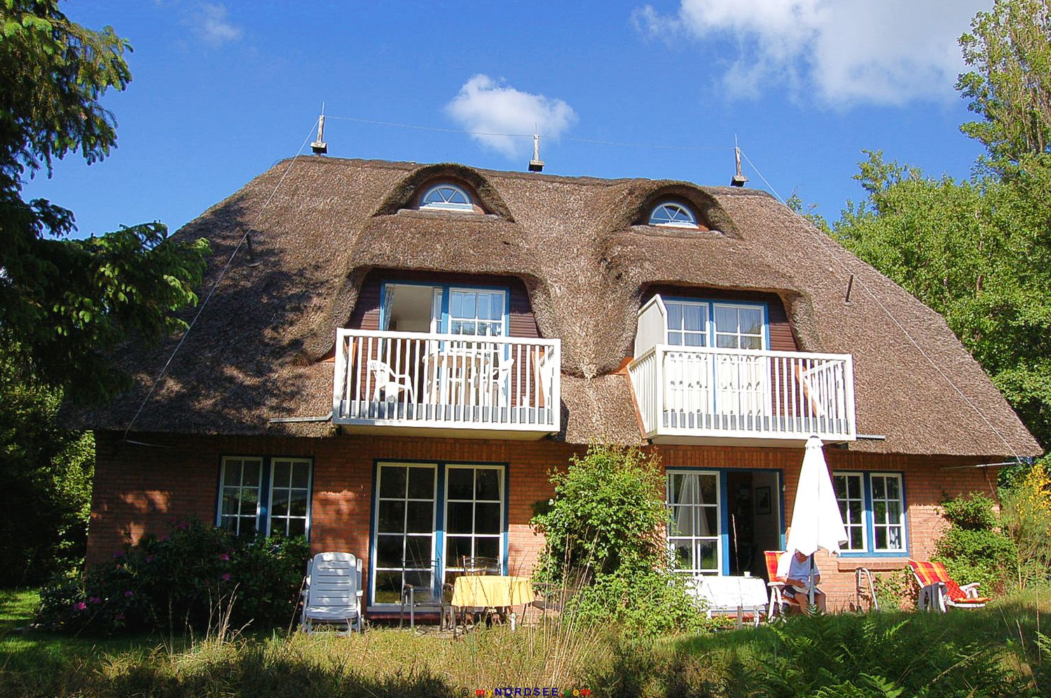 Urlaub unter einem Reetdach, mit sehr geschmackvoll eingerichteten Ferienwohnungen. In diesem Haus gibt es 4 Wohnungen und auf dem Grundstück gehört je ein Pkw-Stellplatz dazu. Sie wohnen nur 250 Meter vom Strand entfernt. Das Haus liegt am Ende einer Sackgasse im Ortsteil Böhl. Wer nicht nur in der Nordsee baden mag, kann sich in der Dünen-Therme herrlich austoben. Sauna, Solarium, Dampfbad, hier ist alles vorhanden. Weitere sportliche Möglichkeiten ist neben Surfen, Tennis und Reiten das Radeln. Die Landschaft, die grünen Deiche laden gerade dazu ein, und ausreichend Wald ist ebenfalls vorhanden. Viele Restaurants laden ein, um Sie mit leckeren Gerichten zu verwöhnen. Ein wunderschöner Ort mit besonderem Flair, und Sie werden sich hier wohl fühlen