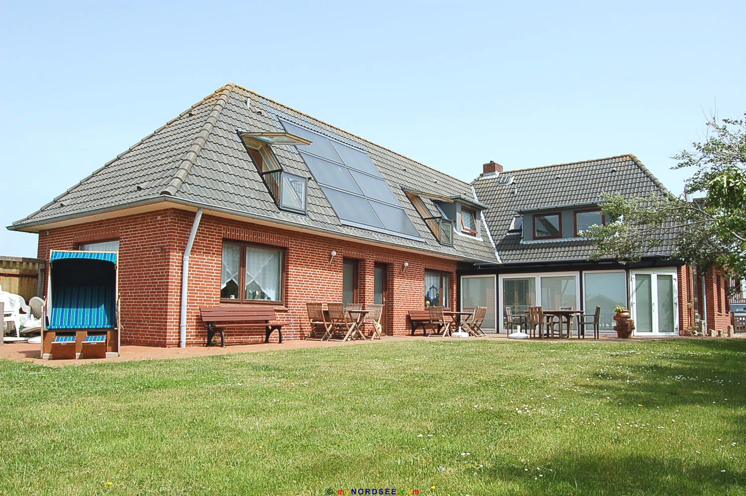 Die im Haus bestehenden 4 Ferienwohnungen, zwei im Erdgeschoss und zwei im Obergeschoss, werden ganzjährig vermietet. Sie sind sehr komfortabel, gemütlich und mit einer kompletten Ausstattung eingerichtet. Selbst ein WLan-Internet und Telefon ist für Sie in jeder Wohnung vorhanden. Für alle Wohnungen ist eine Gemeinschaftsterrasse und eine Grillecke im Garten vorhanden. Die Lage des Hauses zeichnet sich durch die Nähe zum wunderschönen Ordinger -Sandstrand, der nur 300 Meter bzw. 5 Gehminuten entfernt ist, wo aber auch eine Autoüberfahrt zum Strand ist. Einkaufsmöglichkeiten für Ihren täglichen Bedarf ist ganz in der Nähe. Schaukel und Sandkiste stehen im Garten für Ihre Kids bereit und Sie können dann aus den 2 vorhandenen Strandkörben Ihre Kinder beobachten und sich dabei erholen.