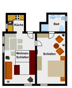1 Zimmer Ferienwohnung - 32 m² Wohnfläche