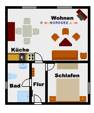 2 Zimmer Ferienwohnung - 48 m² Wohnfläche